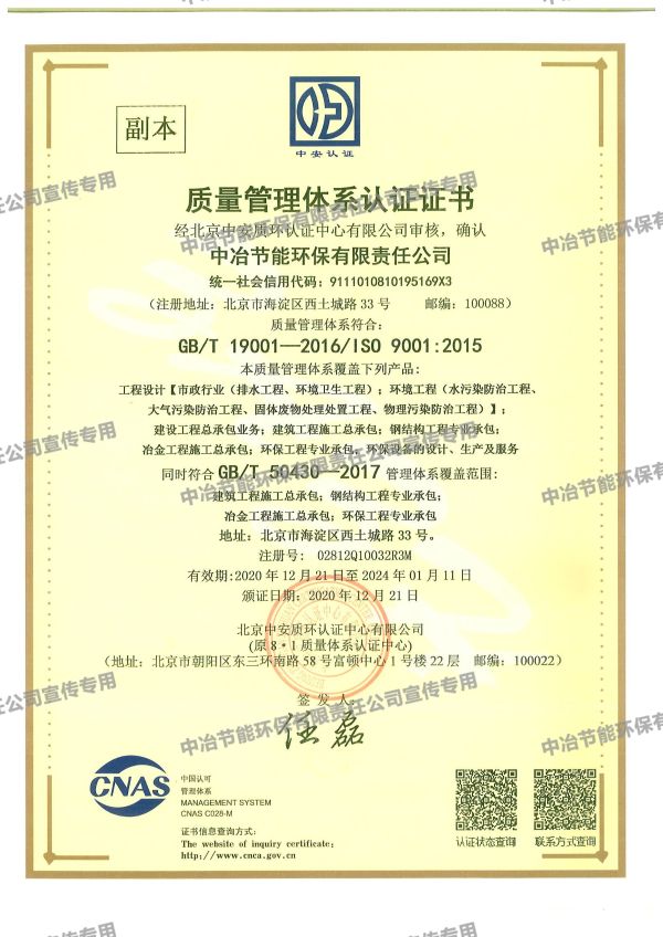质量管理体系认证证书